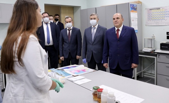 Михаил Мишустин и Вениамин Кондратьев оценили разработки молодых ученых КубГУ в Краснодаре