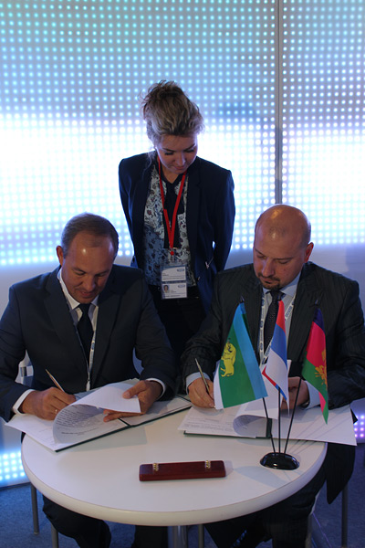 За два дня работы Форума, 2 и 3 октября подписано 3 соглашения на сумму 921 млн.руб., из них 2 соглашения по реализации инвестиционных проектов предприятиями ООО "Юг-Агро" и ООО "Мост-Агро" по закладке яблоневых садов интенсивного типа площадью до 700 га.